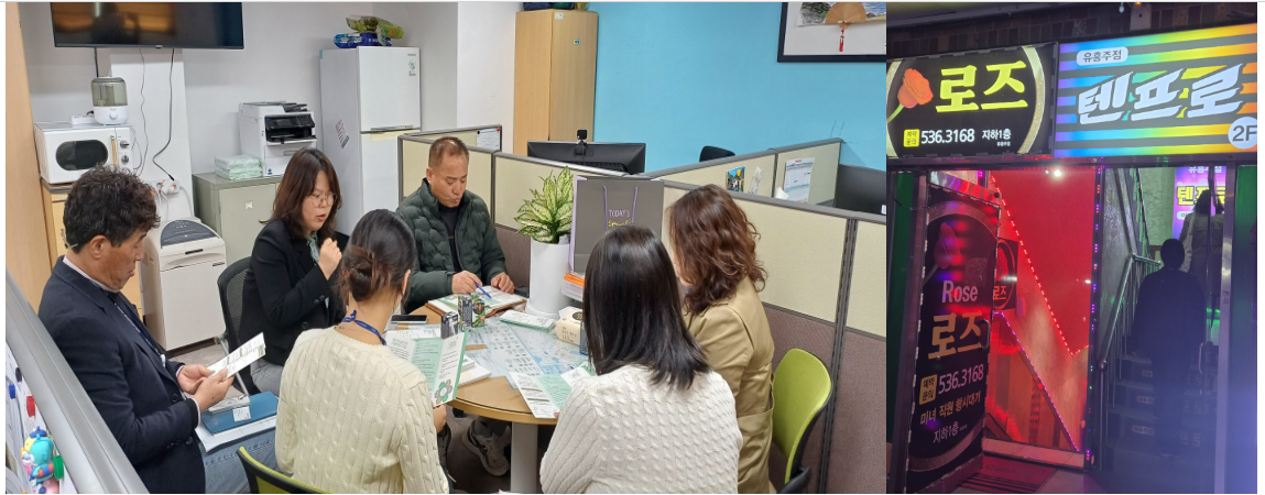 ![]() 배추 뽑고, 벼 베는 추수의 계절 가을 ! 11월 13일!! 목포여성인권지원센터가 해남지역 현장방문상담 활동을 진행하였습니다. 지난 4월 해남지역 현장방문상담 당시 ‘다방 집중단속’과 농한기로 인해 많은 여성들을 만나지 못한 아쉬움이 컸던 탓일까요? 하반기에 한 번 더! 심기일전 하여 농번기로 바쁜 해남 지역 업소를 방문하였습니다. 이번 해남지역 현장방문상담 물품으로 가장 뜨거운 반응을 보였던 여성 자활 물품인 탈취제와 림밥으로 언니들과 ‘여성자활’ 키워드로 자연스러운 대화의 물꼬를 틀 수 있었고, 상담소에서 만들어간 정보지 '소근소근'의 내용에 대해서도 많은 질문과 관심을 받아 상담소의 지원체계홍보의 중요성도 더욱! 느끼게 되었습니다. 하반기 해남군 현장방문상담은 업소 실태조사 뿐만 아니라 유관기관에도 상담소를 적극 홍보하였습니다. 면사무소, 파출소, 보건소, 해남경찰서 여성청소년과 , 여성청소년수사팀과는 법률지원과 의료지원, 긴급구조, 학업지원 등을 설명하는 간담회를 개최하여 해남군의 성매매, 조건만남 실태를 공유하고 연계의 길을 소통 했습니다~ 디딤상담소의 시외현장방문상담은 앞으로도 계속 진행되니 많은 관심 부탁드립니다~! #목포여성인권지원센터 #반성매매 #시외현장방문상담 #해남경찰서 #성매매피해지원체계안내를위한간담회 #반성착취 |